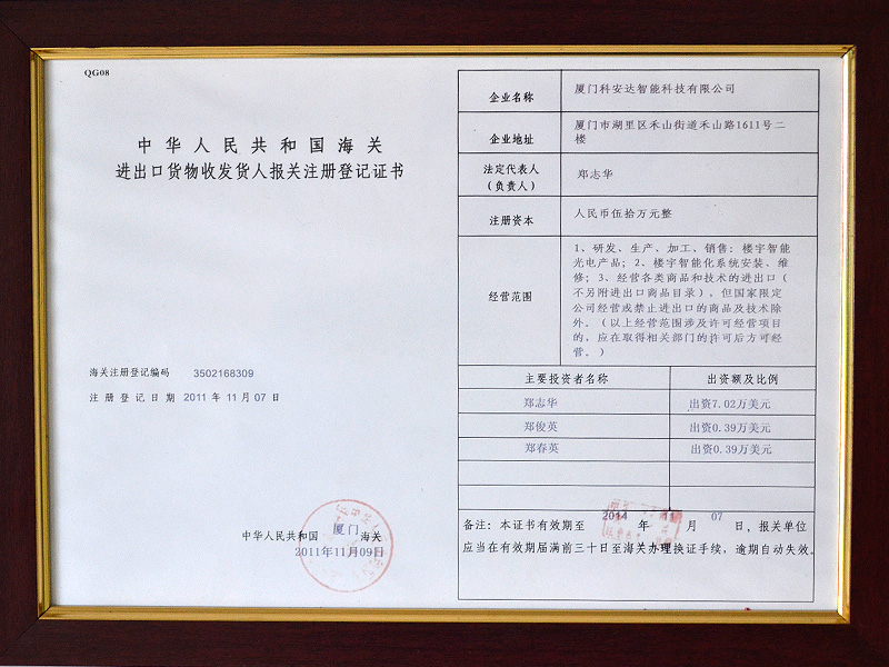 廈門科安達智能科技有限公司,是一家擁有完全自主開發能力和生產能力的知名高新技術企業?!癒AD”是科安達公司在國內注冊的全球性品牌,公司已經通過ISO9001:2008國際質量體系認證和3C等強制性認證,并成為國內外很多知名安防產品的核心合作伙伴 詳情>>
